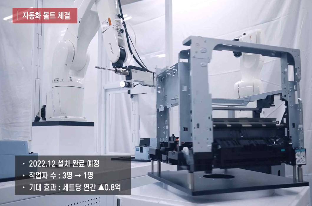 Main Businesses 주요 사업 분야 주요 사업 분야 FA Robotic Systems F&B Robotic Systems F&B Large-Scale Cooking Automation Robotic Systems FA Robotic Systems F&B Robotic Systems F&B Large-Scale Cooking Automation Robotic Systems Main Businesses FA Robotic Systems Printer Assembly Robotic System Manufacturing December 2022 · Automated robotic system for precise bolt fastening on all five sides of a printer using vision-guided calibration. 유기화합물 109종 금속류 20종 가스 상 물질 14종 허가대상물질 12종 금속가공유 분진 7종 물리적 인자 8종 야간직업 2종 Faucet Assembly Robotic System Manufacturing December 2022 · Constructed and supplied a faucet assembly line equipped with four collaborative robots, a vision camera, and fifteen peripheral devices. 유기화합물 109종 금속류 20종 가스 상 물질 14종 허가대상물질 12종 금속가공유 분진 7종 물리적 인자 8종 야간직업 2종 Manufacturing of a Sprue-Cutting Robotic System September 2023 · An automated sprue-cutting line system built and delivered using one industrial robot and peripheral equipment. 유기화합물 109종 금속류 20종 가스 상 물질 14종 허가대상물질 12종 금속가공유 분진 7종 물리적 인자 8종 야간직업 2종